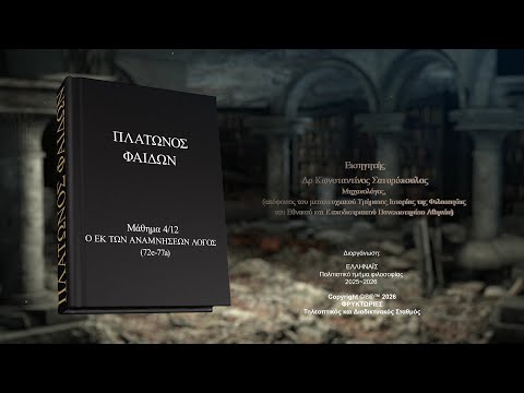 ΠΛΑΤΩΝΟΣ ΦΑΙΔΩΝ. Μάθημα 4/12. «Ο ΕΚ ΤΩΝ ΑΝΑΜΝΗΣΕΩΝ ΛΟΓΟΣ (72e-77a)». Δρ Κωνσταντίνος Σταυρόπουλος.