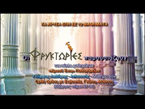 ΧΡΥΣΑ ΕΠΗ Πυθαγορείων – Γιώργος Λαθύρης-Ιαλυσσός. Μάθημα 6ον : Ορθή δράση με Ευβουλία, Γνώση, Μάθηση
