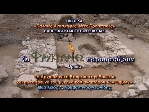 Οι ΦΡΥΚΤΩΡΙΕΣ παρουσιάζουν την ομιλία: «Η ΑΡΧΑΙΟΛΟΓΙΚΗ ΕΤΑΙΡΕΙΑ ΣΤΗΝ ΒΟΙΩΤΙΑ ΚΑΙ Η ΝΕΑ ΕΡΕΥΝΑ ΤΟΥ ΜΥΚΗΝΑΪΚΟΥ ΑΝΑΚΤΟΡΟΥ ΤΩΝ ΘΗΒΩΝ».