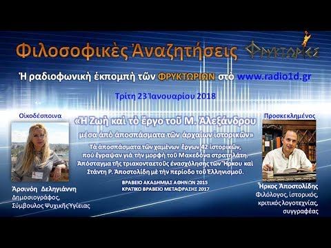Η συνέντευξη παραχωρήθηκε στην ραδιοφωνική εκπομπή των Φρυκτωριών και της Αρσινόης Δεληγιάννη «Φιλοσοφικές αναζητήσεις».