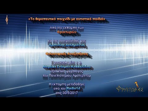 με θέμα: "ΤΟ ΘΕΡΑΠΕΥΤΙΚΟ ΠΑΙΧΝΙΔΙ ΜΕ ΑΥΤΙΣΤΙΚΑ ΠΑΙΔΙΑ", ο οποία παραχωρήθηκε στην εκπομπή των Φρυκτωριών και της Αρσινόης Δεληγιάννη "Φιλοσοφικές αναζητήσεις".